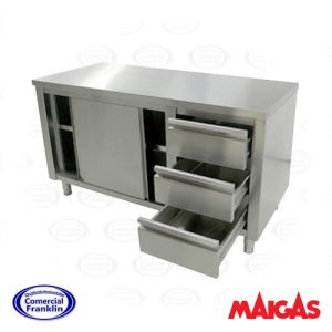 - Bandejero integrado: Espacio adicional para almacenar bandejas o utensilios, manteniendo el área de trabajo despejada.