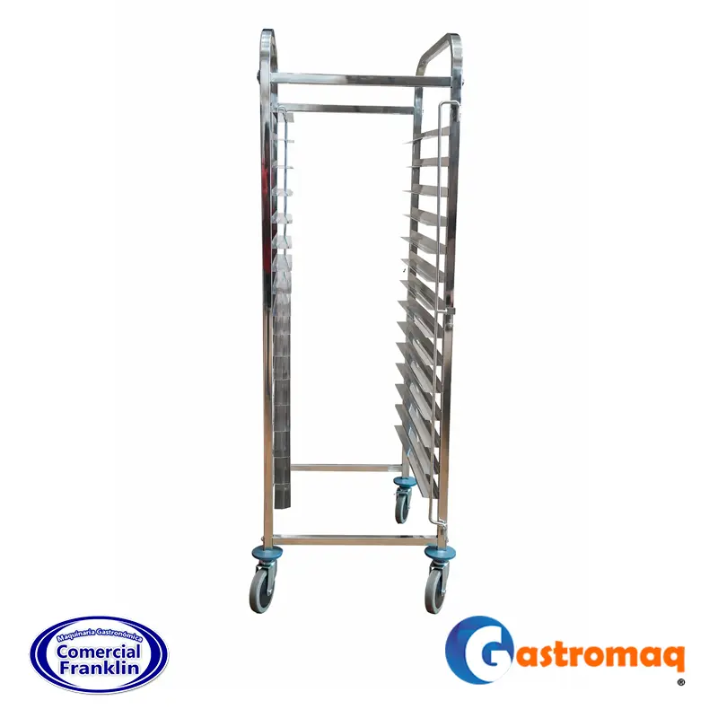 - Compatibilidad perfecta con bandejas de 60×40 cm, este carro es una solución práctica para panaderías, restaurantes y comercios que requieren manejo eficiente de productos horneados o preparados.