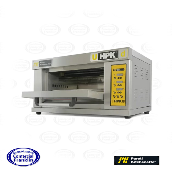 Los hornos de piso Pareti-Kitchenette® eléctricos poseen controladores mixtos análogos esto quiere decir que los hornos U HPK pueden utilizar varios métodos de cocción en un solo equipo con la función de humidificador y una combinación la placa refractaria y la inyección de vapor. Ideal para distribuir el calor seco, mejorando la cocción del pan u otros productos como carnes.
