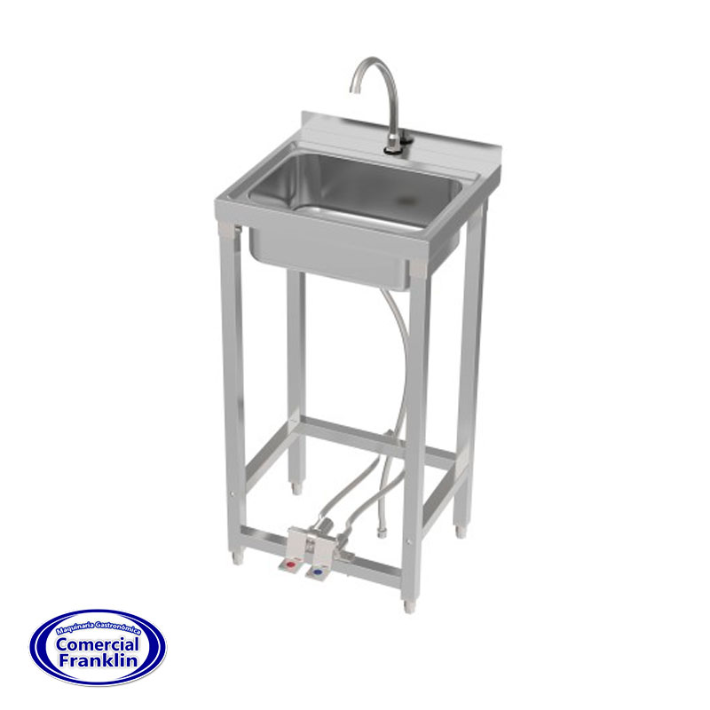 - Este lavamanos está fabricado en acero inoxidable AISI 304, el estándar para la industria alimentaria y hospitalaria, gracias a su resistencia química, durabilidad mecánica y facilidad de limpieza. La estructura es estable y está pensada para soportar un uso intensivo, tanto en áreas industriales como clínicas.