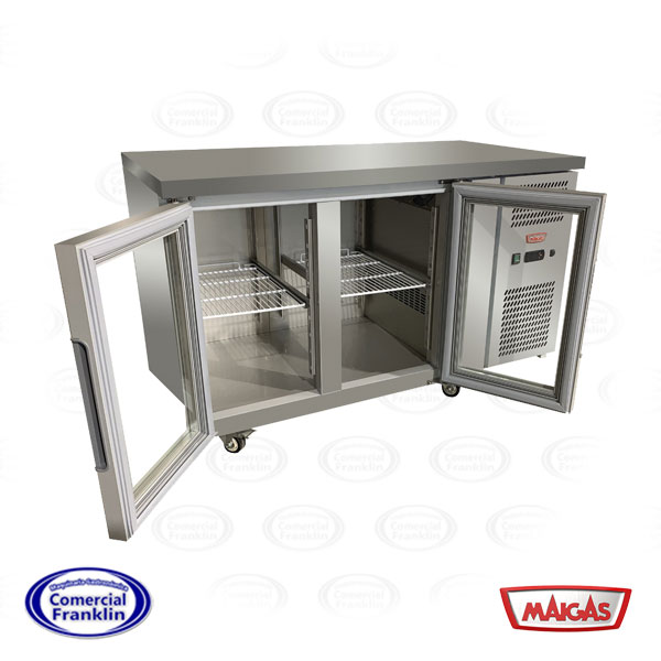 Mesón Bajo Refrigerado 2 Puertas Vidrio Abatibles 365 lts. Maigas