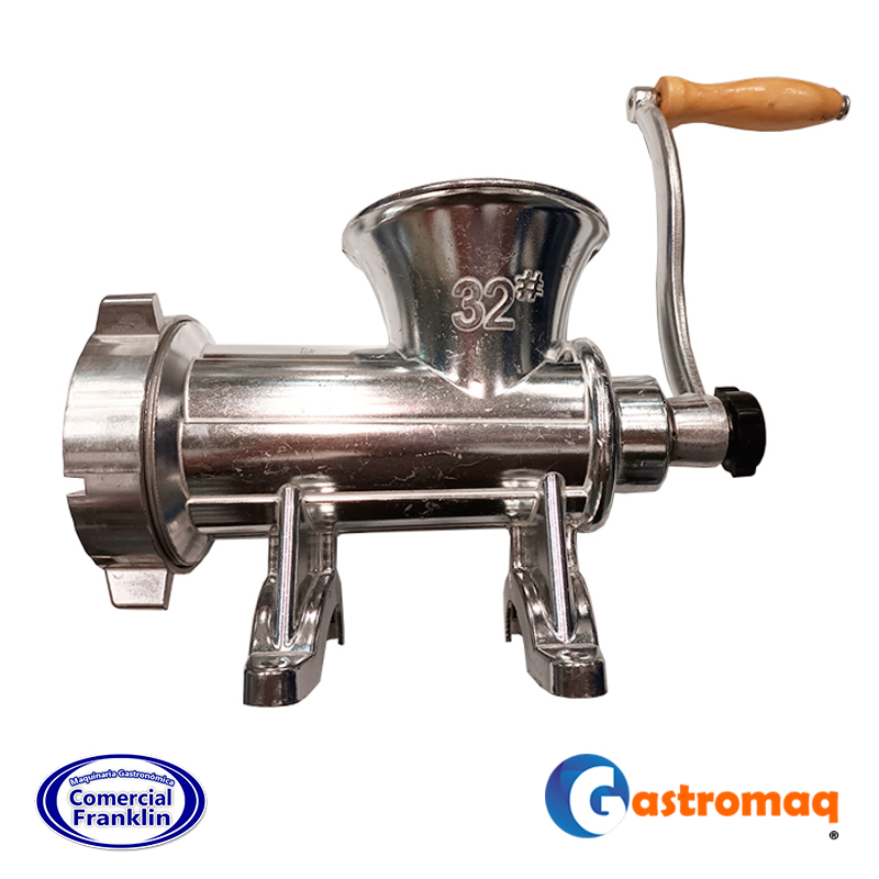 - Moledora de carne manual N° 32, ideal para moler grandes cantidades de carne de manera eficiente en carnicerías, cocinas comerciales y establecimientos gastronómicos.