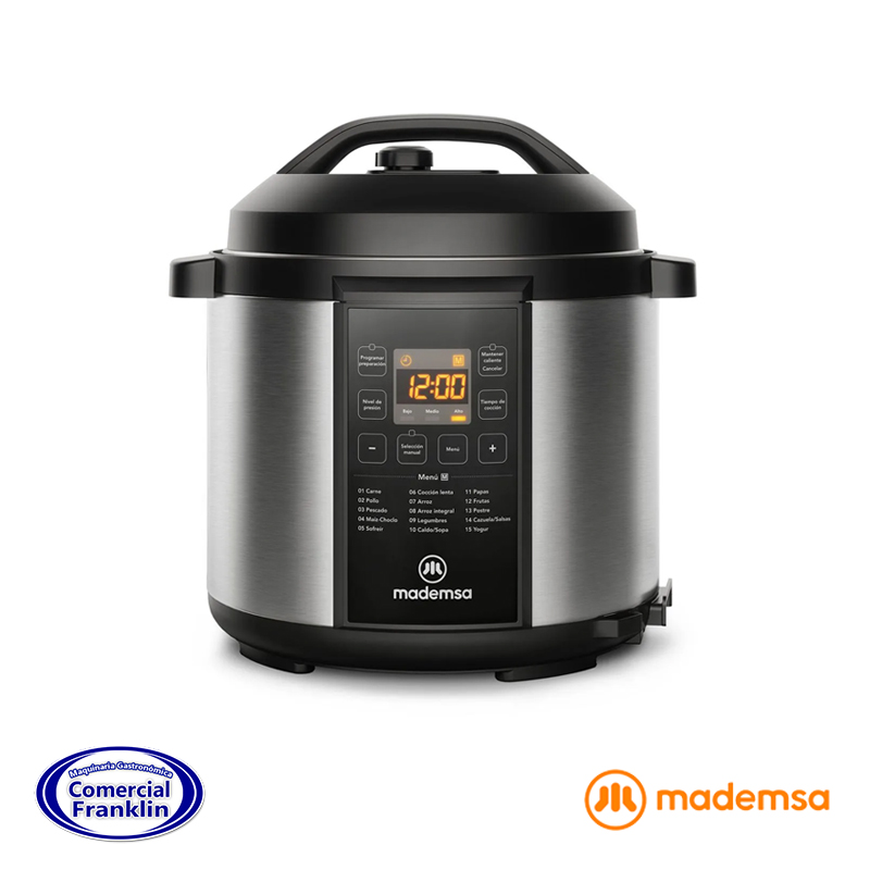- Olla Eléctrica Multicocción Mademsa 5L con Temporizador MPC10 Acero Inoxidable La Olla Multicocción Mademsa 5L MPC10 es perfecta para usted que desea preparar recetas con seguridad. El producto cuenta con 9 dispositivos de seguridad durante la preparación de las recetas para su mayor tranquilidad en la cocina, como el bloqueo automático de la tapa cuando la olla alcanza la temperatura de presión y apagado automático si la presión interna sobrepasa el límite adecuado. Con temporizador fácil de ajustar, al girar un botón puede programar hasta 60 minutos para sus recetas. Así, llegarán al punto correcto. Para que las comidas estén siempre a la temperatura ideal, la olla posee la Función Mantener Caliente. Asi, su receta se mantiene caliente hasta el consumo. La olla interna de 5 litros, garantiza una alta capacidad para preparar varias porciones de sus recetas preferidas. Es removible y antiadherente, lo que facilita la limpieza. Además, la Olla Multicocción Mademsa MPC10 viene con los accesorios necesarios para que su día a día en la cocina sea más práctico, como el medidor de copa y la espátula.