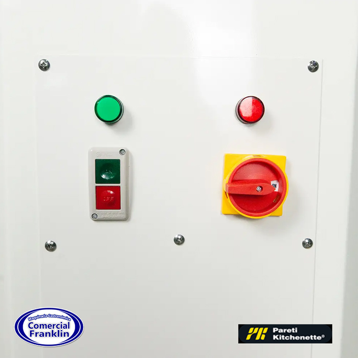- Diseñada para manejar grandes volúmenes de masa, esta máquina eléctrica utiliza un potente motor de 220V que garantiza un rendimiento eficiente y consistente.