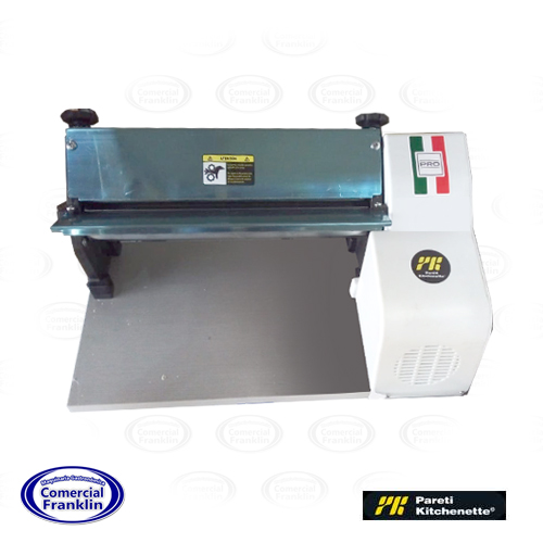 - Sobadora de pasta con rodillos de acero cromado con 37 cm de aprovechamiento y 5,7 cm de diámetro.
